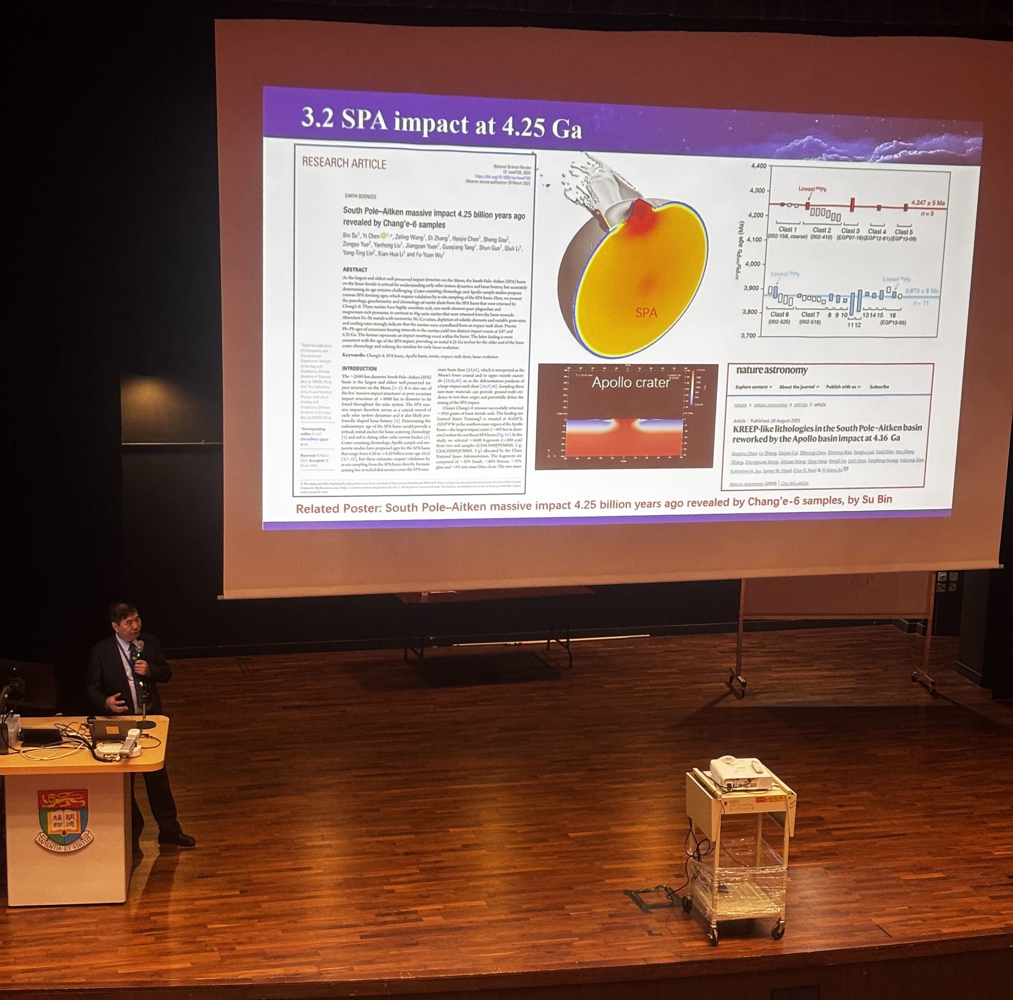 Sen Hu of IGG CAS spoke about how the Moon’s farside mantle contains less water than within the nearside as measured by Chang’e 6 and 5 samples respectively. These new measurements have added to the debate on the topic by lending tactile credence to the hypothesis that our Moon indeed lost most of its water during its fiery formation. CASC’s previous news release on the Chang’e 6 study had noted how Francis McCubbin, NASA’s Astromaterials Curator and a peer reviewer of the paper, called the work “a landmark study on the water abundance of the lunar farside.”
