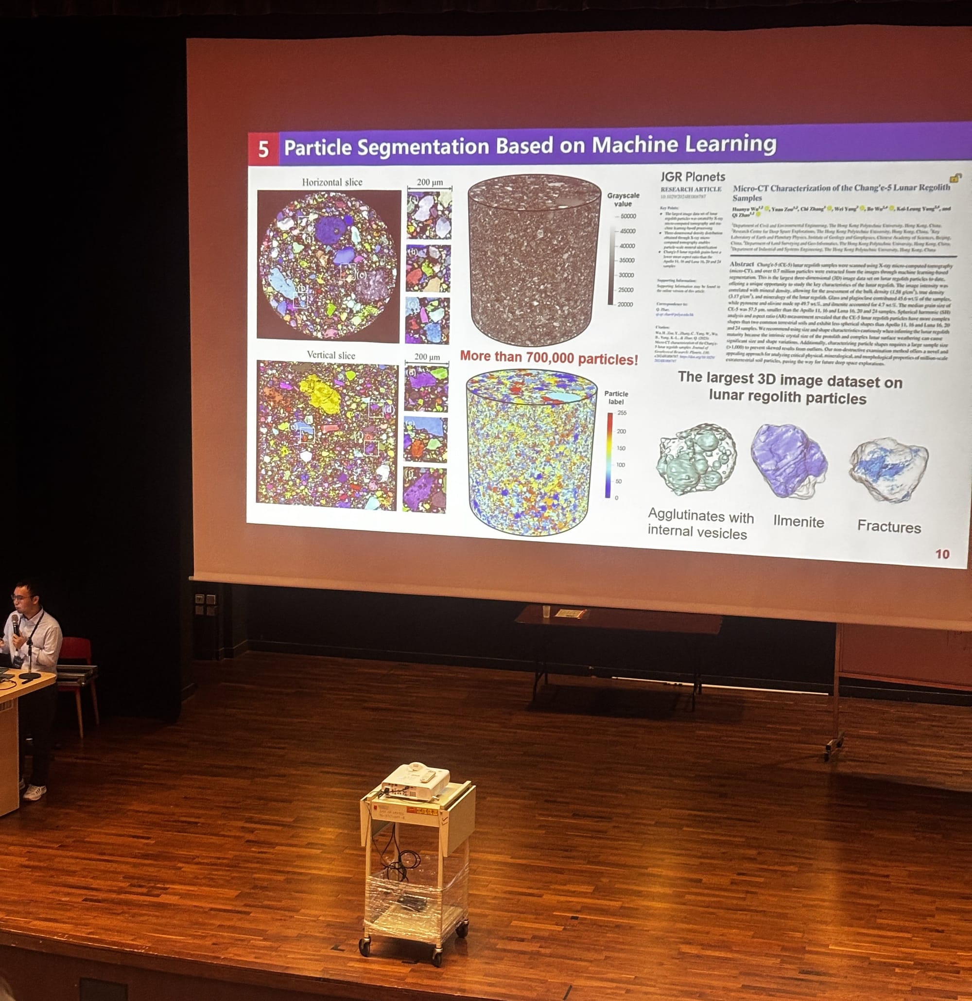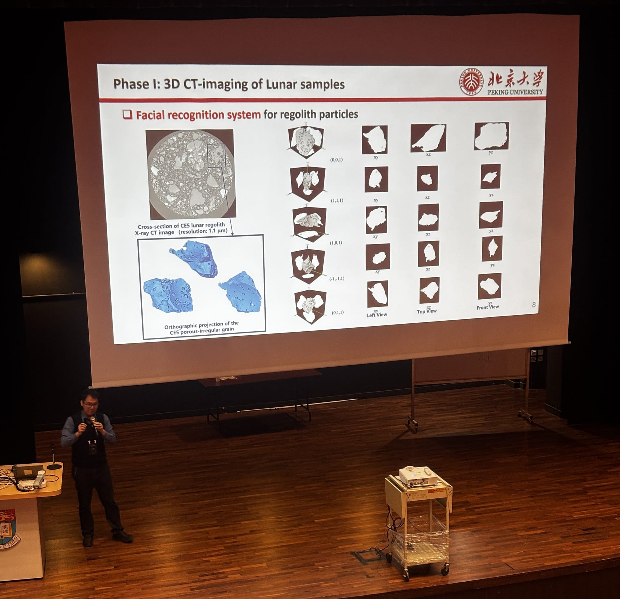 Qi Zhao of the Hong Kong Polytechnic University presented how China is making the largest 3D image dataset of lunar regolith particles to date. Relatedly, Ke Xu of Peking University spoke about the importance of better modeling how volatiles diffuse in lunar soil and rock structures to efficiently study and utilize water ice on the Moon on future missions. This work also allows for more efficient studies of the same sample grains across multiple institutions, using what Ke Xu called the “facial recognition system for regolith particles”.