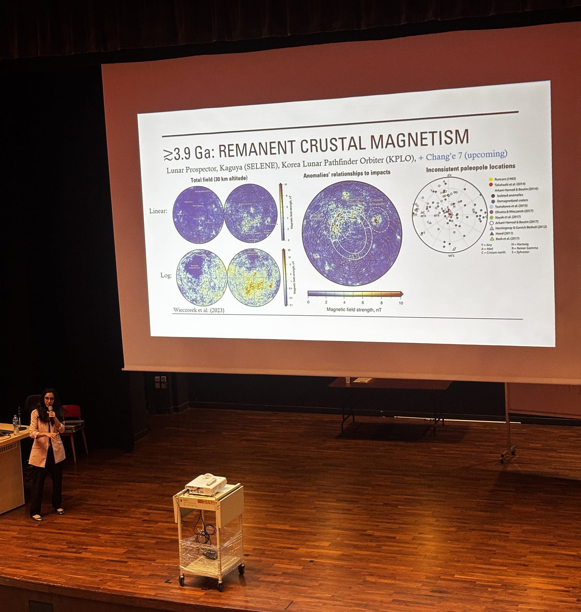 Sonia Tikoo of the Stanford University presented how soon after the Moon’s formation its global magnetic field deteriorated over time and how our understanding of the same has changed too with new evidence, including from Chang’e samples. Tikoo noted how combined with sample studies, targeted surface-based observations from the upcoming rover on China’s Chang’e 7 mission as well as the Lunar Vertex lander-rover instrument suite flying to the swirl of Reiner Gamma aboard Intuitive Machines’ third Moon mission will help resolve key mysteries related to the Moon’s magnetic evolution, which in itself it tied to that of the Moon’s evolution.