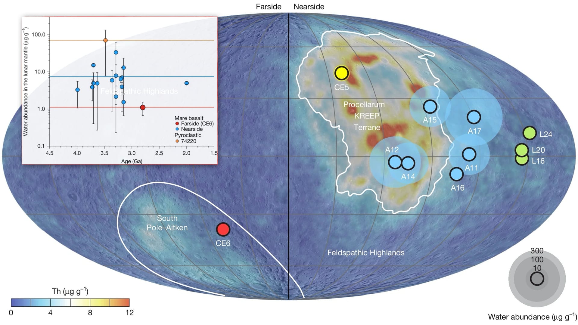The impact that created the SPA was so colossal that scientists think it changed the physical and chemical makeup of the Moon’s mantle down to hundreds of kilometers. And that’s exactly what Chang’e 6 sample studies presented at ILSRS have found, such as a morphed mantle source for volcanism on the Moon’s farside. The dominant Chang’e 6 samples are lava bits which erupted ~1.4 billion years after the SPA event, which morphed the mantle. The Chang’e 6 volcanic materials thus exhibit a unique makeup compared to other volcanic lunar samples. A study of 16 fragments scooped up by Chang’e 6 found them severely lacking elements such as titanium and thorium.